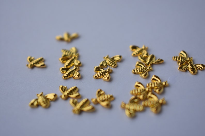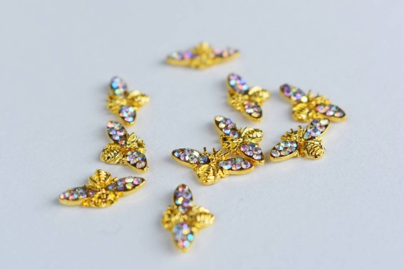 2 Pcs 3d Bee Nail Decorations Golden Bees With Ab Aurora Etsy