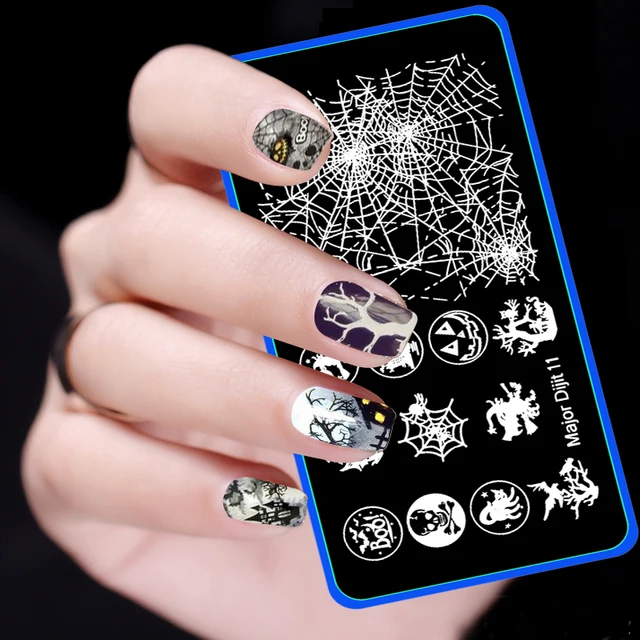 Happy Halloween Bat Large Cobweb Nail Art Stamping Image Template