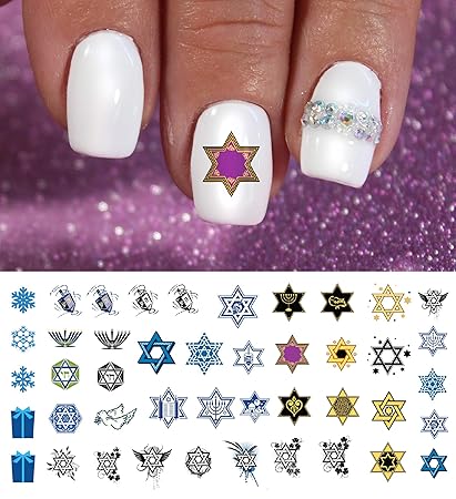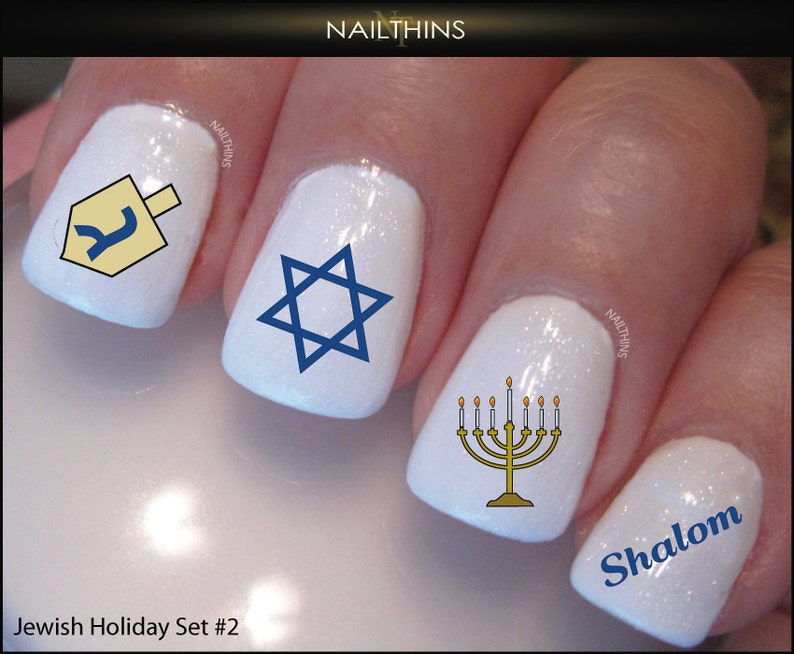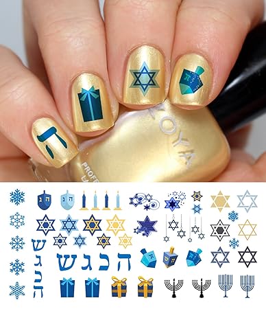 Hanukkah nail art. It includes all the hanukkah colors glitter the star of david hebrew writing and a menorah to boot. Hanukkah holiday assortment water slide nail art decals set 2 salon quality 55 x 3 sheet. This is gorgeous and i would love to rock these nails this hanukkah season. This is video 8 of 8 for my sally hansen fallholiday series.