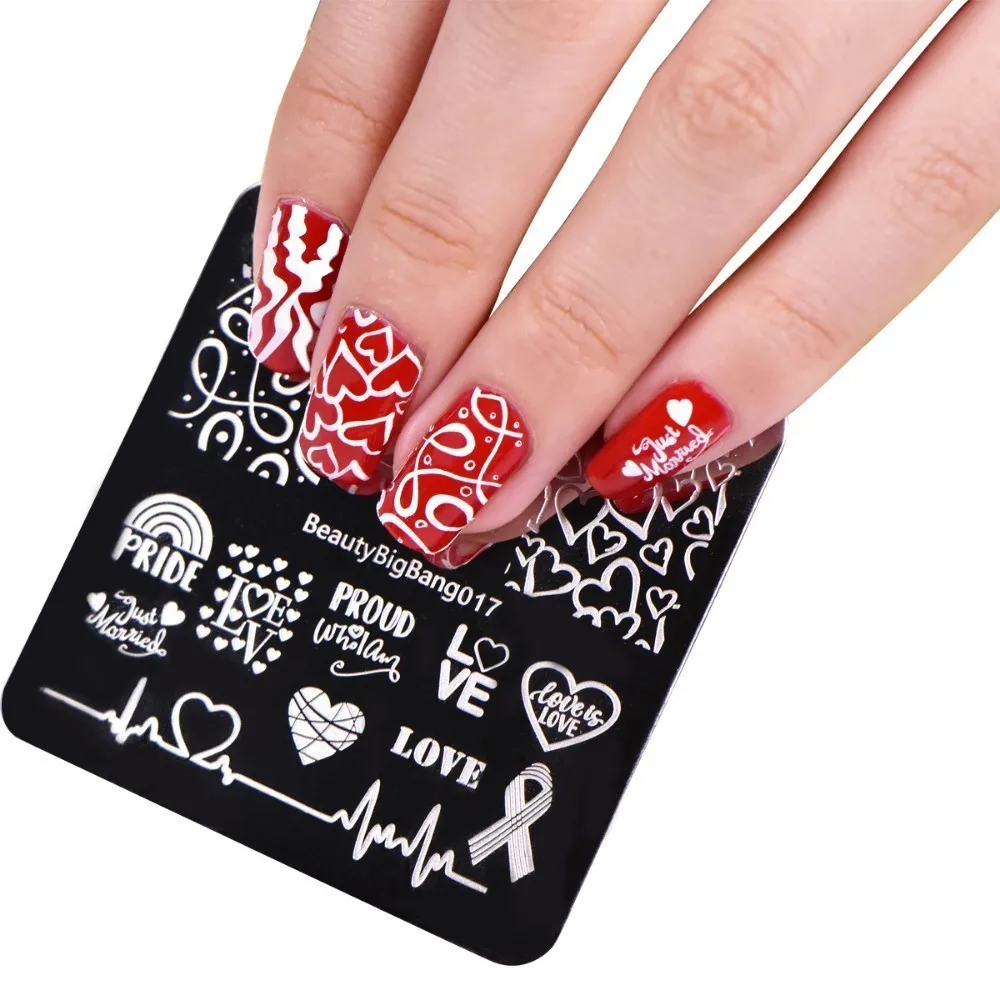Lgbt Pride Love Rainbow Nail Stamping Plate Heartbeat Theme For Mani