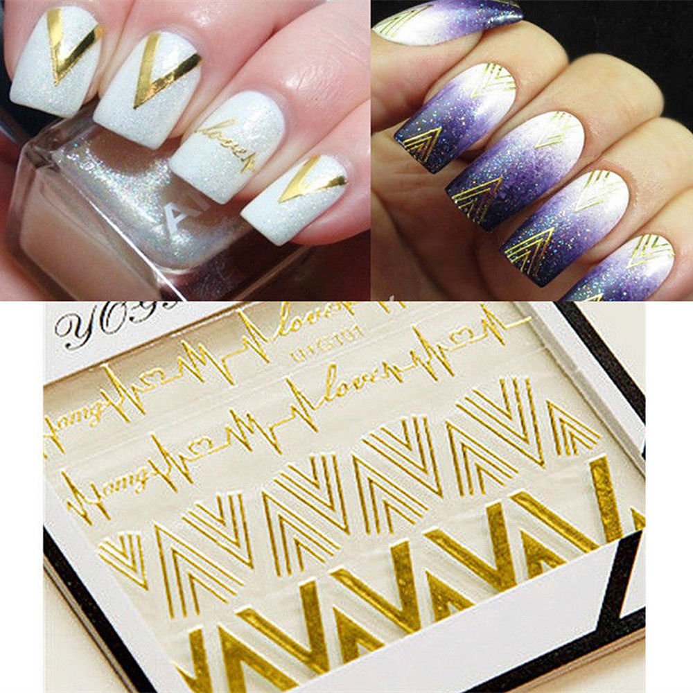 Amazon Com Aranher Tm 3d Metallic Gold Nail Art Stickers V Shape
