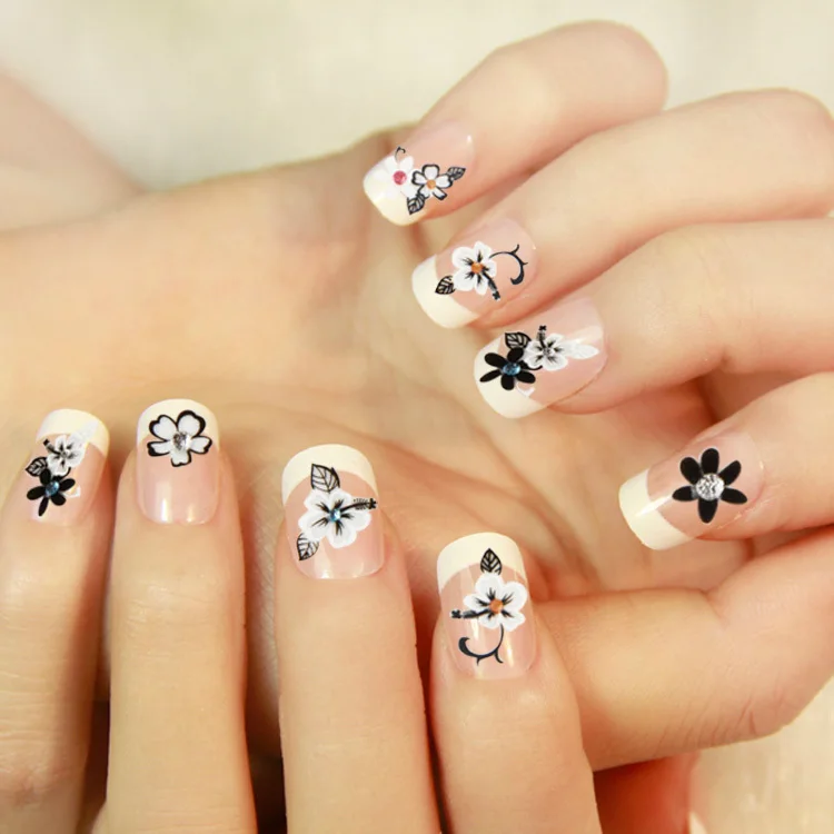 Hot Sale Nail Art Sticker Color Crystal Decal Black White Hibiscus