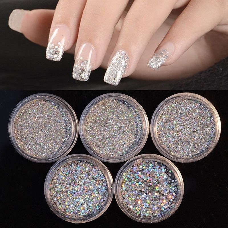 1 Box Holographic Nail Glitter Powder Shinny Sliver Pigment Dust