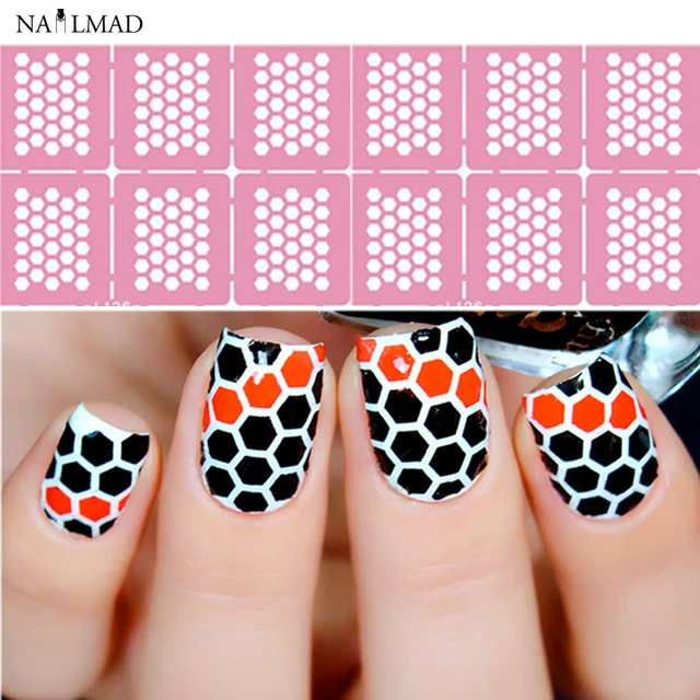 Us 1 55 18 Off Nail Vinyls Honeycomb Pattern Nail Art Stencils Guide Vinyl Decal Sticker In Stickers Decals From Beauty Health On Aliexpress Com