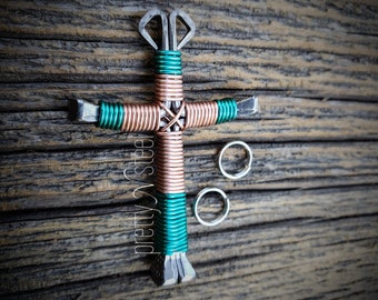 Hand Crafted Horseshoe Nail Cross Bound With Art Wire