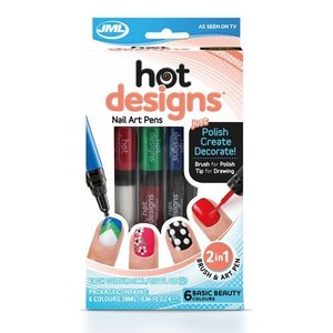 Jml Hot Designs Nail Art Pens Polish Varnish Gel Brush 6 Colours