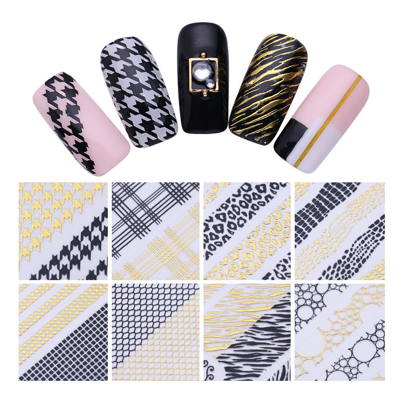 3d Nail Art Sticker Gold Lattice Houndstooth Leopard Stripe