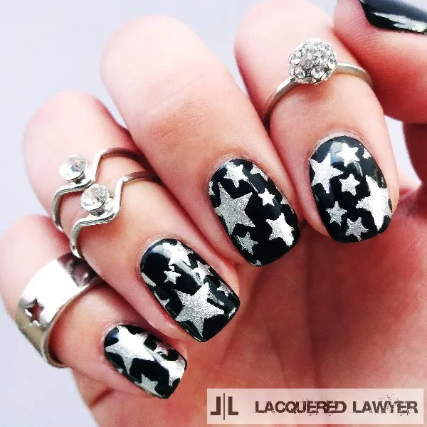 Stenciled star nails tutorial once you have enough stars punched to cover a nail peel the tape off of the wax paper. The size of the nail art decals will depend on where youre placing the vinyl nail designs. Start at the tip of each star and then the corners and split the different between the two. Weave string back and forth and all about through nails.