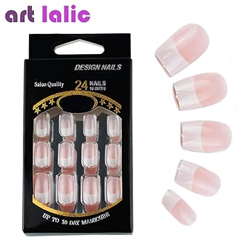Amazon Com 24 Pcs Set French Acrylic Nails False Full Cover For