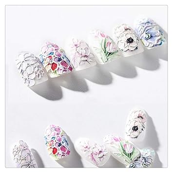 Amazon Com Tanwpn Nail Art Stickers 1pcs 3d Engraved Flower Acrylic