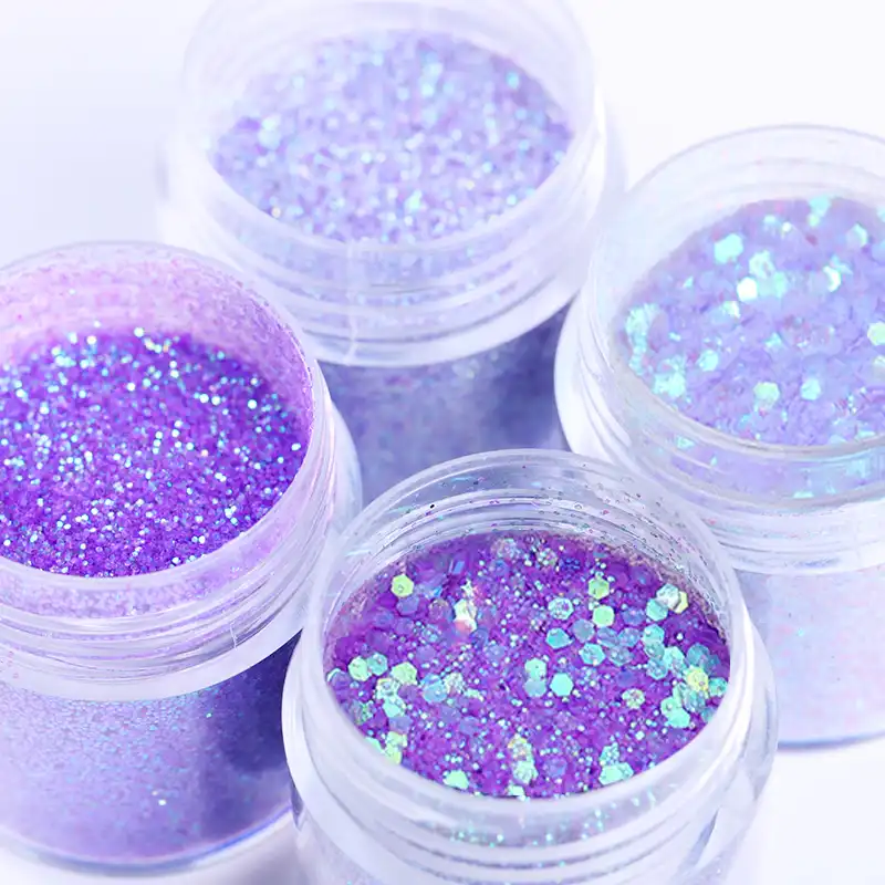 Detail Feedback Questions About 4 Boxes Purple Nail Glitter Set