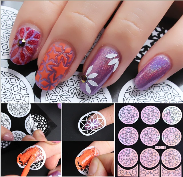 Multiple Use Nail Art Hollow Template Stickers Nails Tips Polish