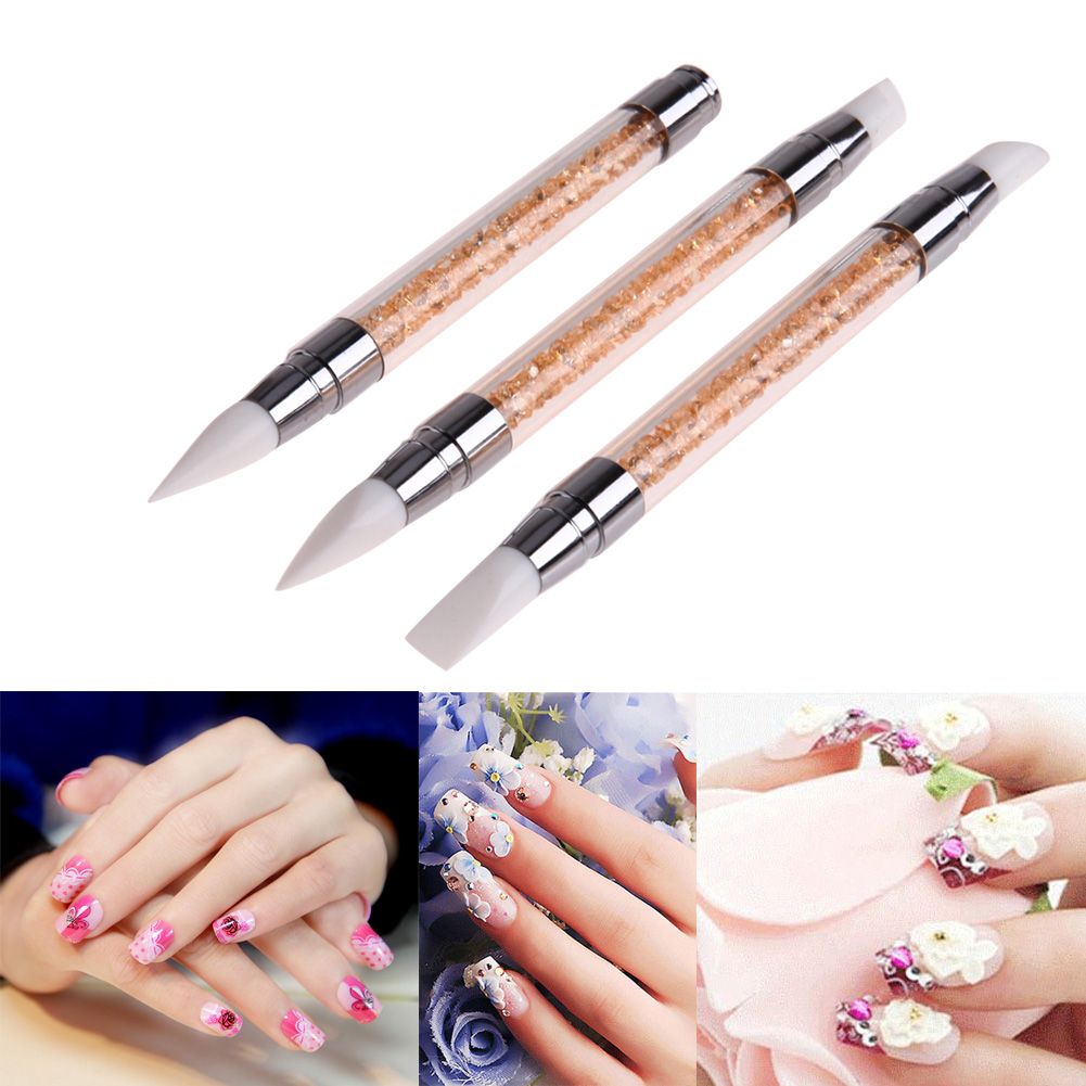 Buy 3pcs Acrylic Handle Rhinestone Nail Art Brushes Silicone Head