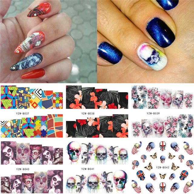 6 Sheets Skull Flower Etc Pattern Nail Art Water Transfer Stickers