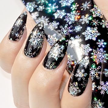 Amazon Com Holo Silver Snowflake Nail Foil Decoration Black Style