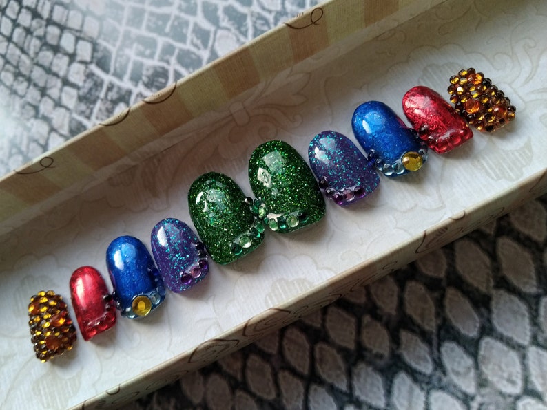 Thanos Infinity Gauntlet Gems Inspired Press On Nail Fake Etsy