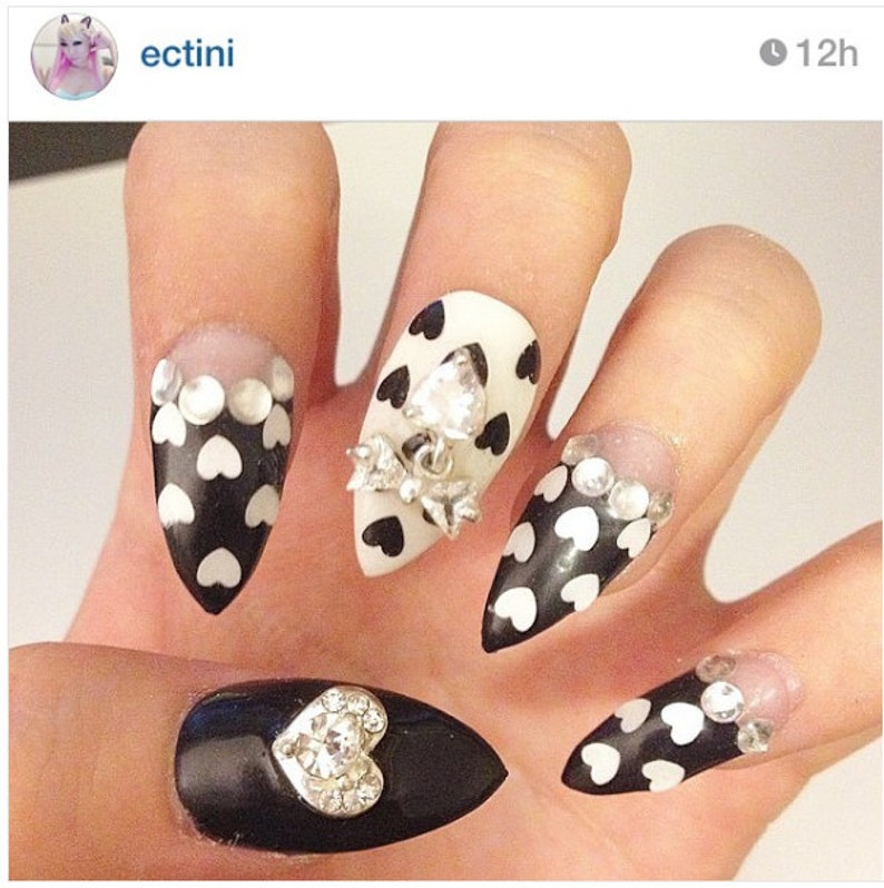 Black White Hearts With Bows 3d Nails Japanese Gel Nail Art Etsy