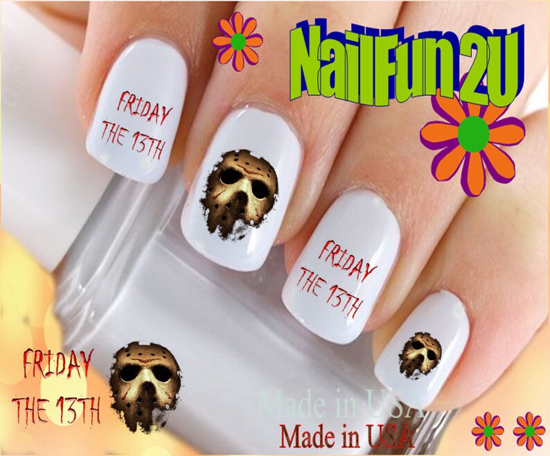 Halloween Nail Decals Friday The 13th Jason Mask Etsy