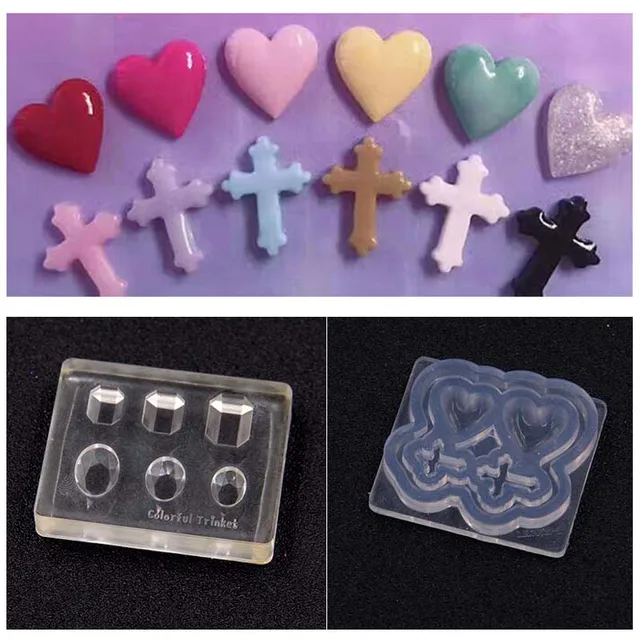 Nail Art New Silicone Mold Jesus Cross Heart Elliptical Gem Shape