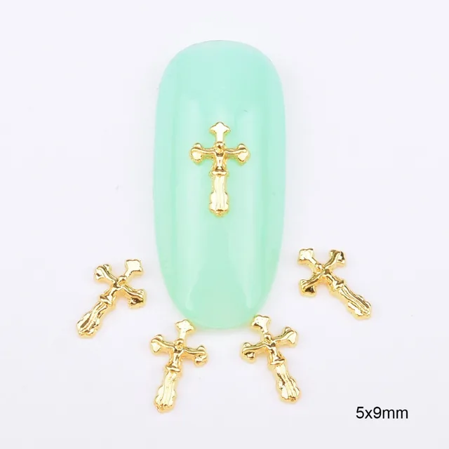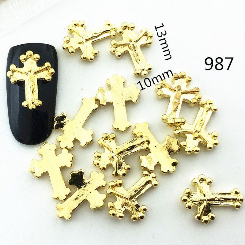 10pcs Lot 7 12mm Gold Jesus Cross 3d Diy Design Metal Alloy Nail Art