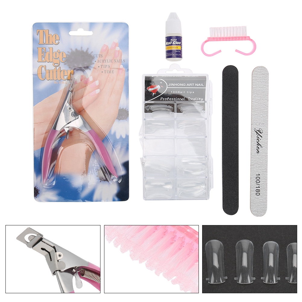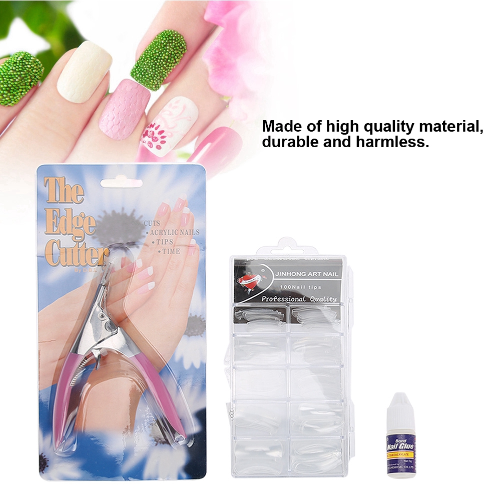 Manicure Nail Tips Tool Kit Transparent Diy False Glue Cutting Art