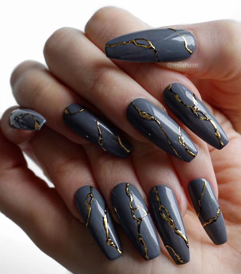 Grey Kintsugi Luxury Press On Nails Etsy