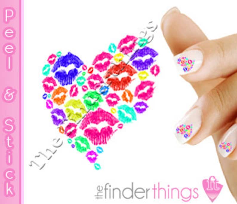 Lips Kiss Heart Valentine S Day Nail Art Decal Sticker Set Etsy