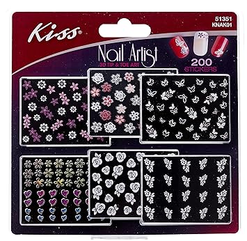 Kiss Nail Artist 200 Count 3d Tip Toe Art Stickers Hair Nails