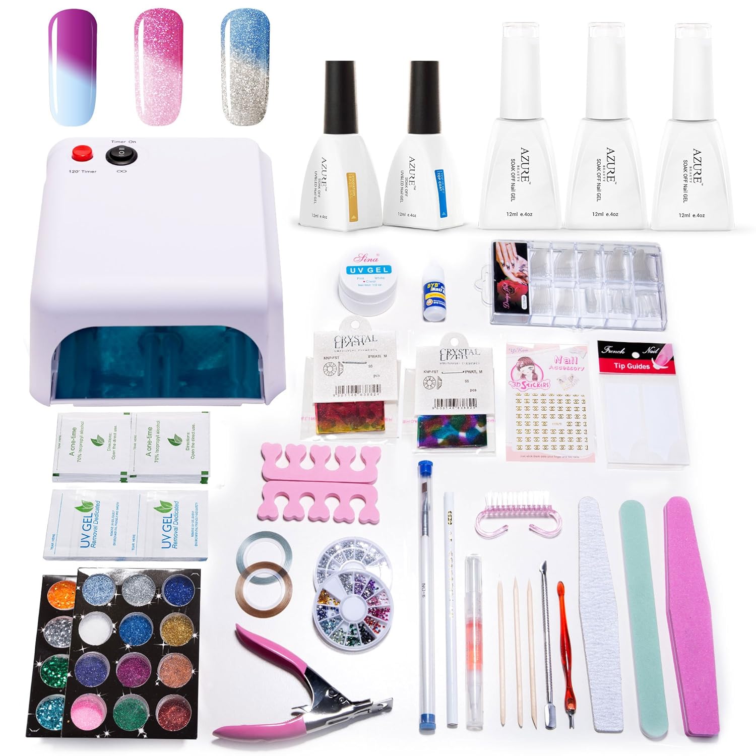 Amazon Com Azure Beauty Gel Nail Polish Kit Nail Art Soak Off Gel