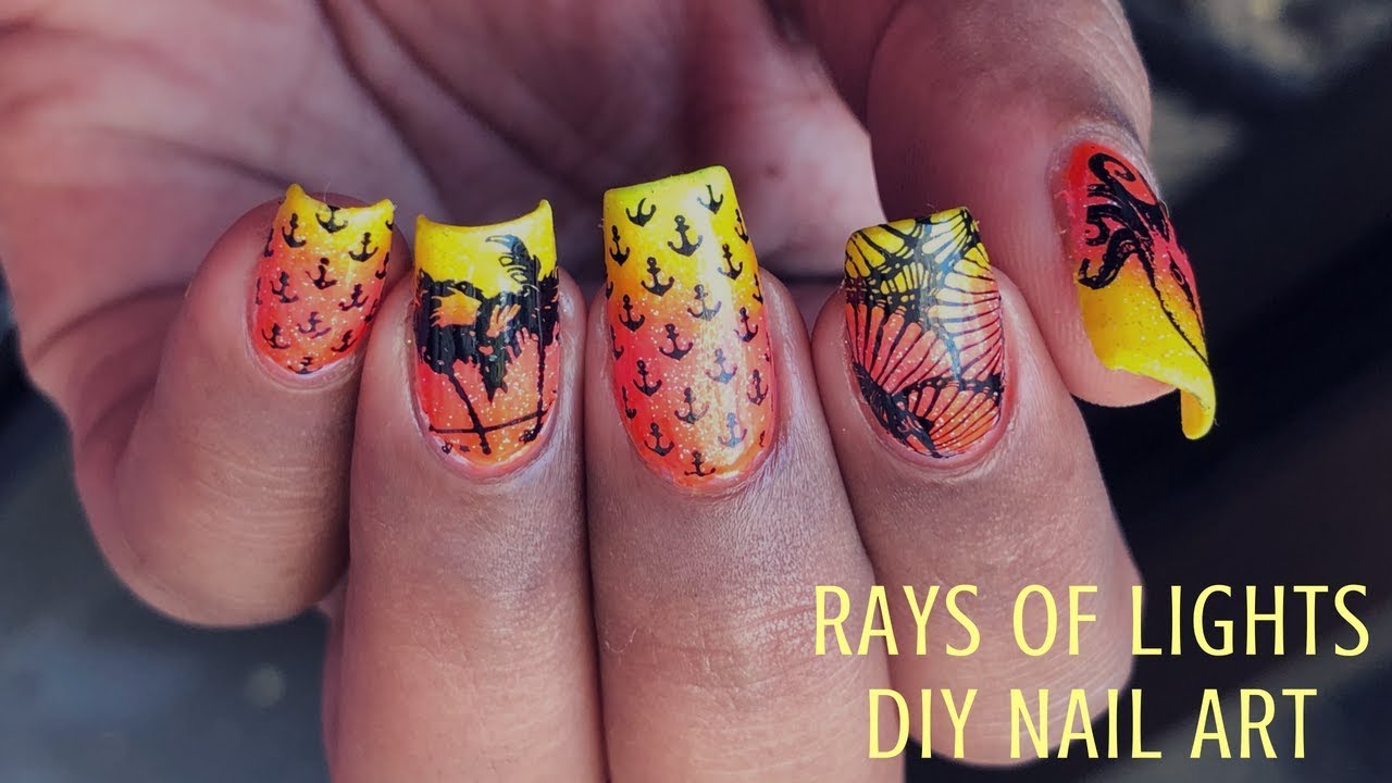 Rays Of Light Nail Art Using Kads Stamping Plate Kleancolor