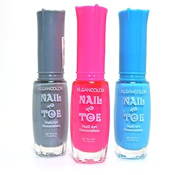 Amazon Com Kleancolor 3 Nail To Toe Art Thin Brush Pink Blue Gray