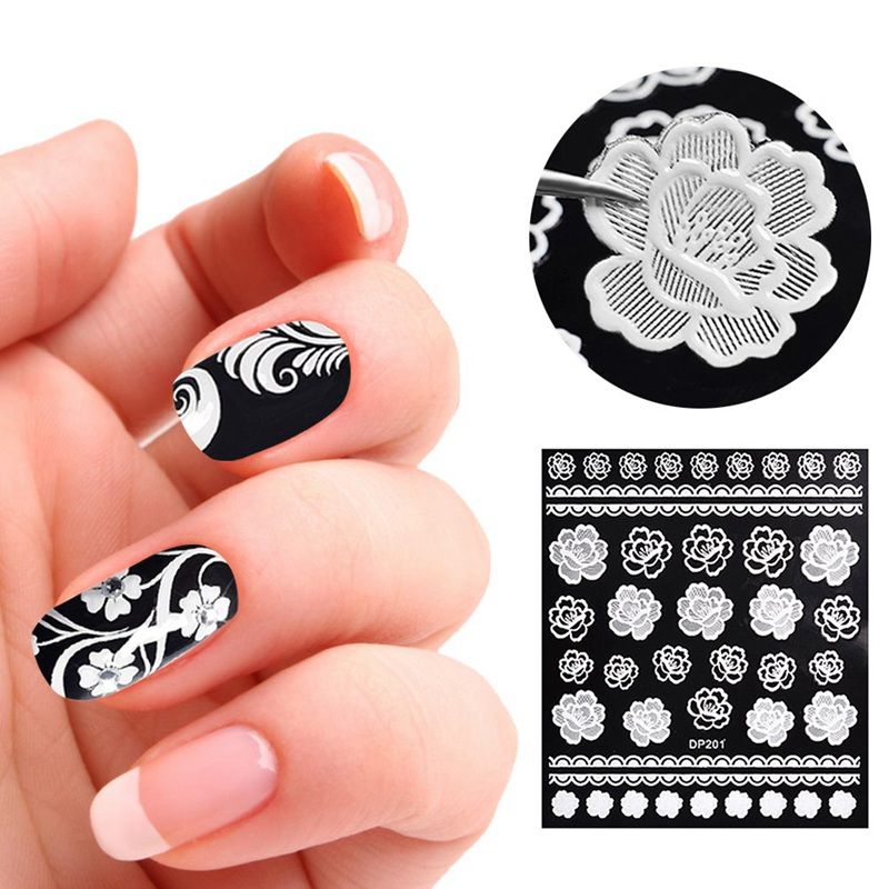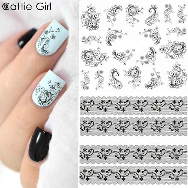 Nail Art Sticker White Black Lace Decal Tips Decorations Us 3 21