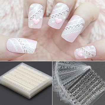 Amazon Com Bhbuy 2 Sheets Sweet Nice White Lace 3d Nail Art