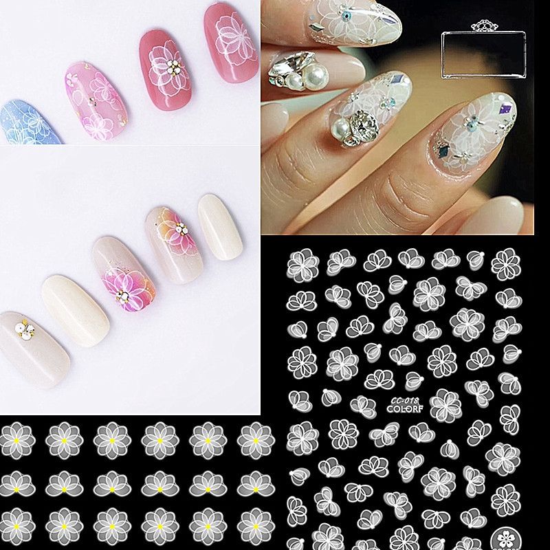 White Flowers Lace Nail Art Stickers Decorations Strips 3d Nail