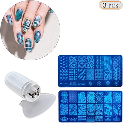 Hisight Nail Art Stamping Plate Scraper Set Lace Pattern Diy Nail Art Image Stamp Silica Gel Stamping Plates Manicure Template
