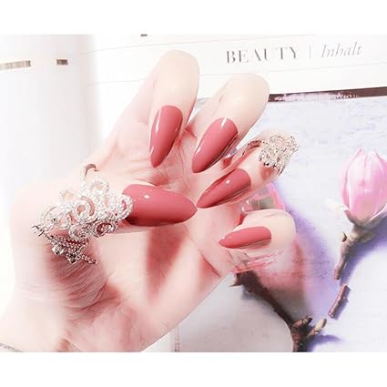 Amazon Com Hyl World 24 Pcs False Nail Natural Long Sharp Glossy