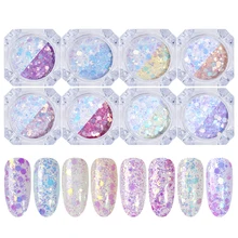 1 Box Nail Glitter Powder Light Onion Symphony Glitter Sequin Nail Art Decoration Color Change Sequin Size Mixed Bottle