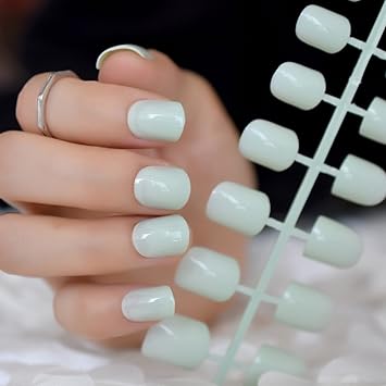 Amazon Com 24pcs Kit Simple Design Fake Nails Light Green Medium