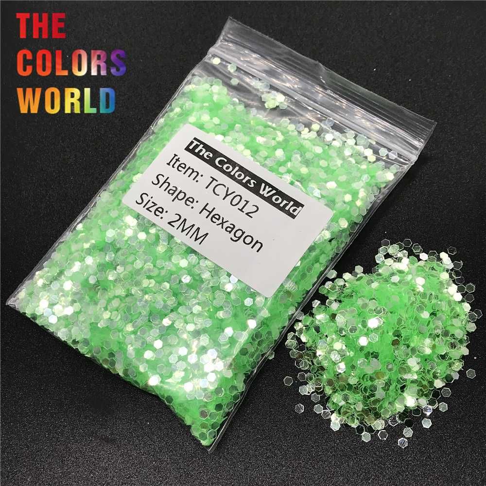 Tcy012 Shinning Silver Light Green Color Hexagon Shape Nail Glitter