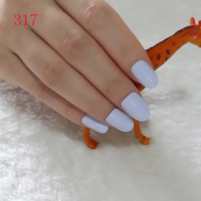 Shiny Short Fake Nails Light Grey Blue False Nail Oavl Top Lady