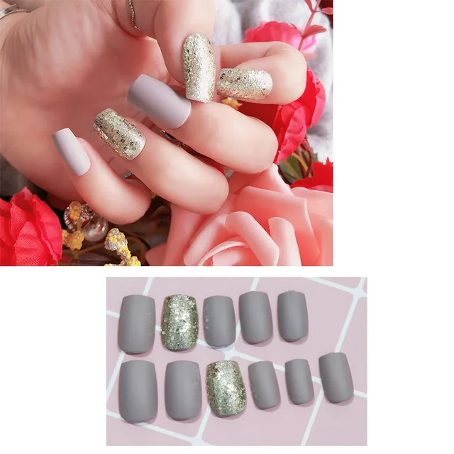 Candy Light Grey Flat Fake Nail Diy Nail Art Full Cover False Nail