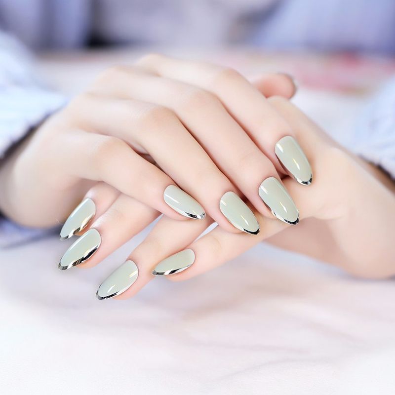 New Oval Full Acrylic False Nails Light Grey Fake Nails Art Salon