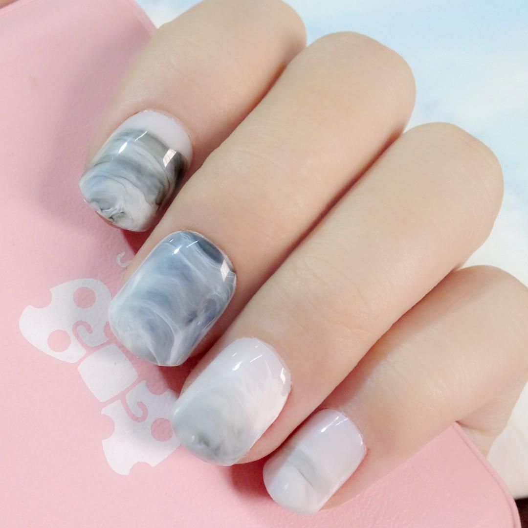 Light Grey Acrylic Fake Nails Marble False Nails Diy Nail Art Press