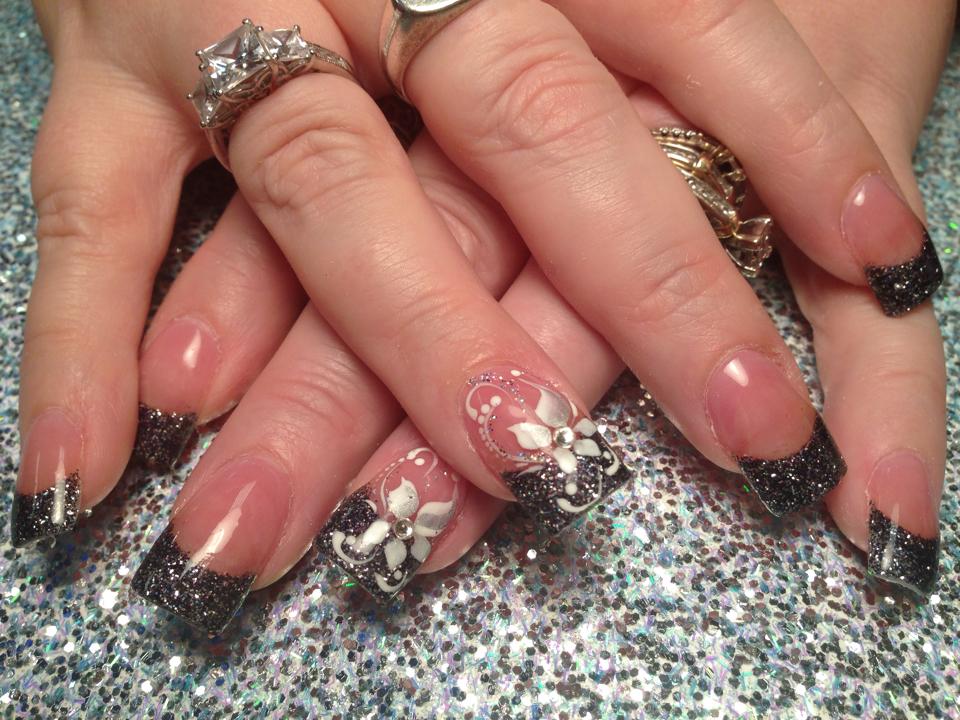 Glitter Acrylic Nails Tutorial One Stroke Lily Nail Art Youtube