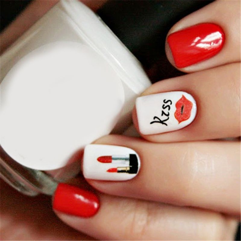 1 Sheet Red Lip Pattern Nail Water Decals Fashion Girl Lipstick Nail