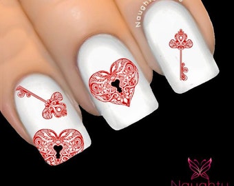 Scroll Heart Lock And Key Valentine Waterslide Nail Decals Nail