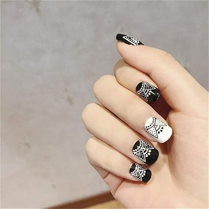 Amazon Com Juzen 48pcs False Nails With Nail Glue Printed Manicure
