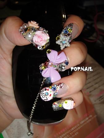 Amazon Com Lolita Japanese Art Bow 3d Fake Nails Set With Diamond