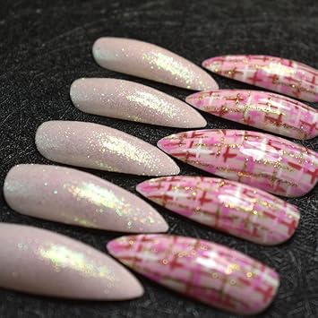 Amazon Com Super Long Stiletto Nail Art Fake Nails Sparkly Glitter