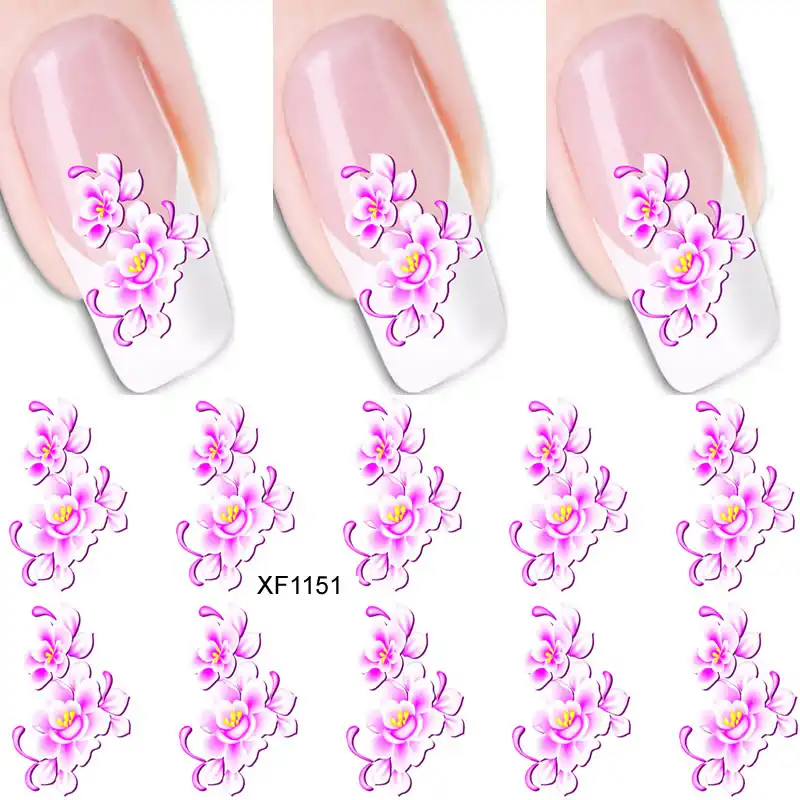 Water Slide Nail Art Decals Nail Floral Stickers Lotus Etsy